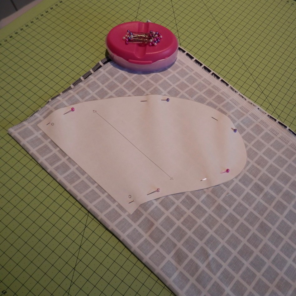Ensimmäiseksi tarvitaan tietysti taskun kaava. Taskun kaava on helppo piirtää. Mallia voi katsoa jostain olemassa olevasta vaatteesta tai ottaa johonkin toiseen kaavaan kuuluvan taskun. Kun kaava on valmis, leikataan kankaasta jokaista lisättävää taskua varten yksi pari kaavoja. Pari tarkoittaa sitä, että kaavasta leikataan yksi kappale + tämän kappaleen peilikuva. Tämä tapahtuu automaattisesti kun kaavan leikkaa kaksinkertaiseksi taitetusta kankaasta.