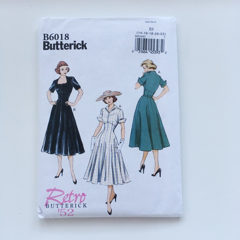 IMG_0272Mitäpä olisi mekkokaavojen lista ilman vintage-ilmettä? Butterickin B6018 on täydellinen 1950-luvun mekkokaava. Tyylikäs mekko vaatii toki paljon kangasta, mutta niinhän ne kaikki 50-luvun mekot tuntuvat vaativan. Tässä kaavassa on potentiaalia niin arkee kuin juhlaan. Upean mekon voisi ommella sekä kesään että talveen. Tästä kaavasta olen jostain selittämättömästä syystä vain sattunut hankkimaan liian suuren koon. Mikään valtava työ kaavan pienentämisessä ei pitäisi olla, mutta en ole vielä saanut ryhdyttyä siihen. Mekon kauniit linjat ja tyylikkäät yksityiskohdat kuitenkin kutsuvat jatkuvasti projektin pariin.