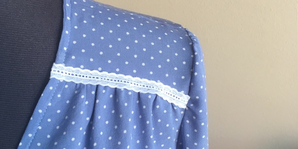 Koska koristenauhavarastoni alkaa olla jo melko täynnä, päätin kaivaa sieltä kaunista valkoista pitsinauhaa, jota oli vielä hieman jäljellä. Lisäsin tätä koristenauhaa mekon etuosan saumakohtiin tuomaan mekkoon hieman lisää persoonallisuutta.