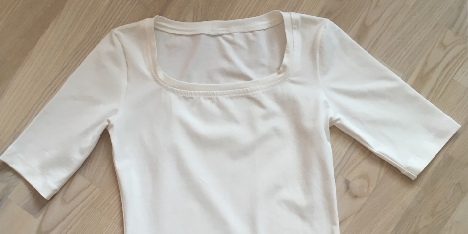 The most simple version of this top is as simple to sew as any other jersey top. The only step where one needs to pay more attention is when finishing the neckline. If one is not paying attention – and wants to cut corners – it is easy to ruin the great slightly square shape of the neckline.