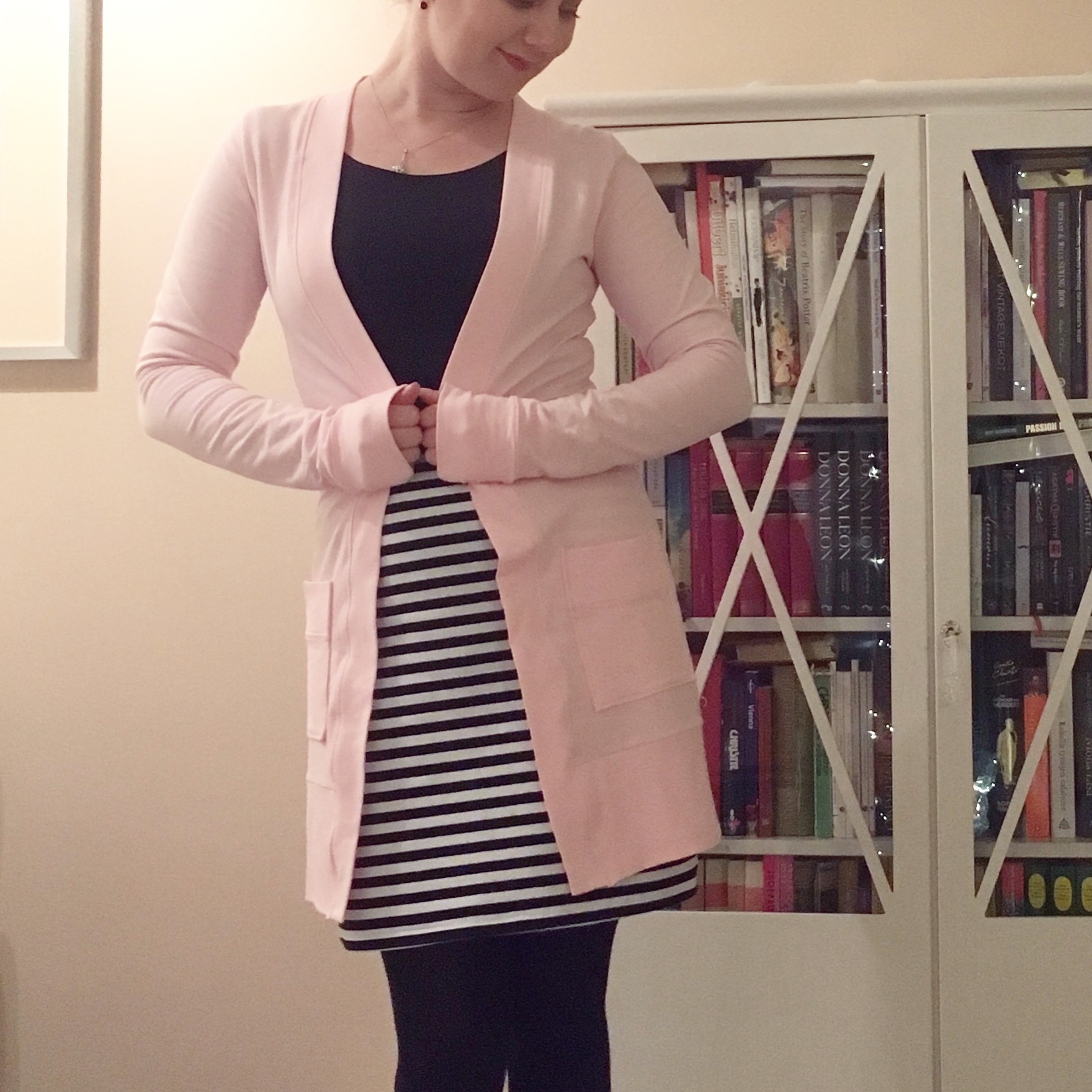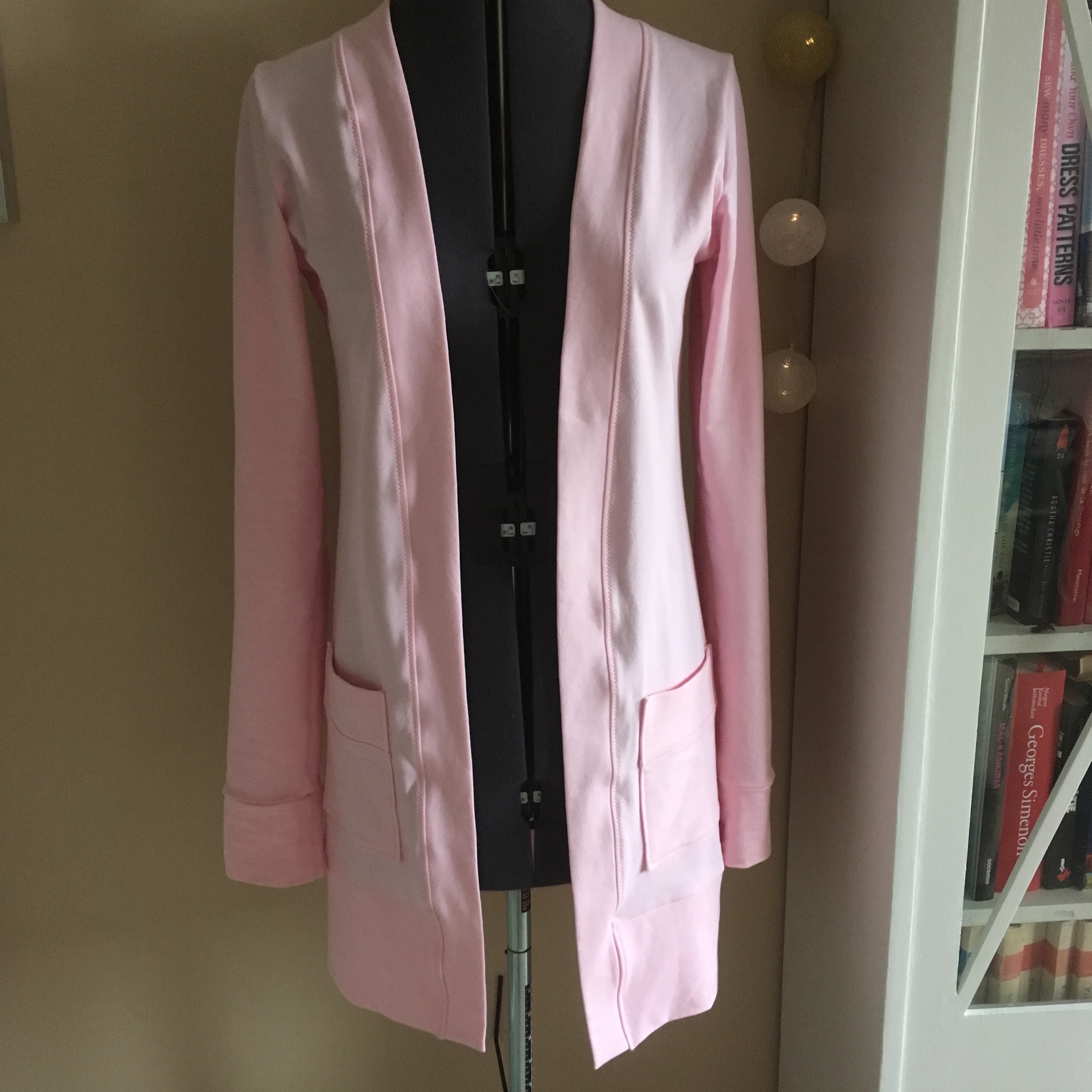 As a sewing project this cardigan was simple – as I expected. I chose the longer length for my version. It has nice size pockets and this lovely wide hem band that gives this cardigan some personality. I give extra points of the sleeves which for once were long enough.