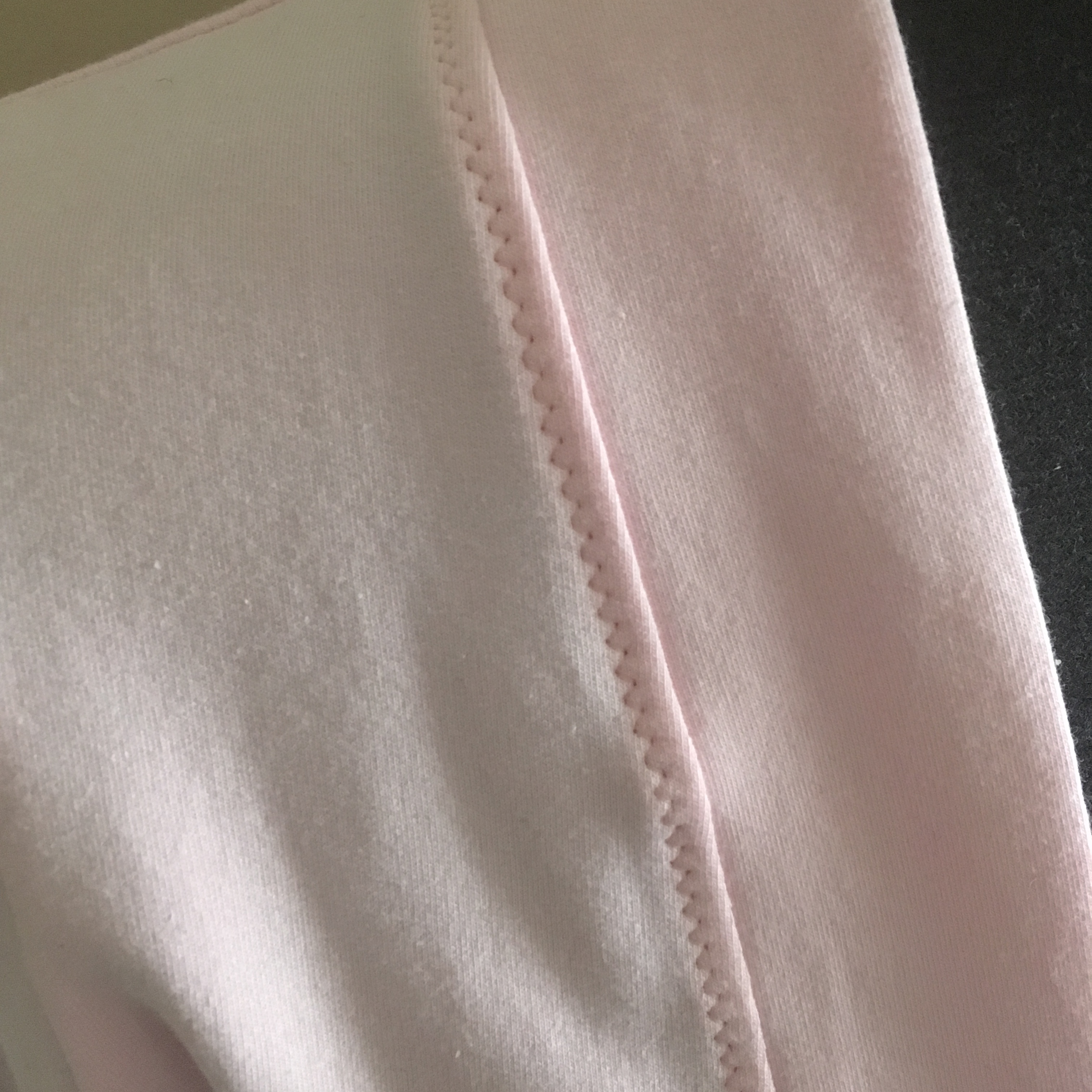 Koska en liiemmin välitä kaksoisneulan käyttämisestä, käytin tässäkin ompeluksessa viimeistelyyn siksakia. Siksak on luotto-ompeleeni joustavien kankaiden tikkauksessa. Aiheesta on tulossa joulukuun puolella erillinen kirjoitus, joten kannattaa pysyä kuulolla.