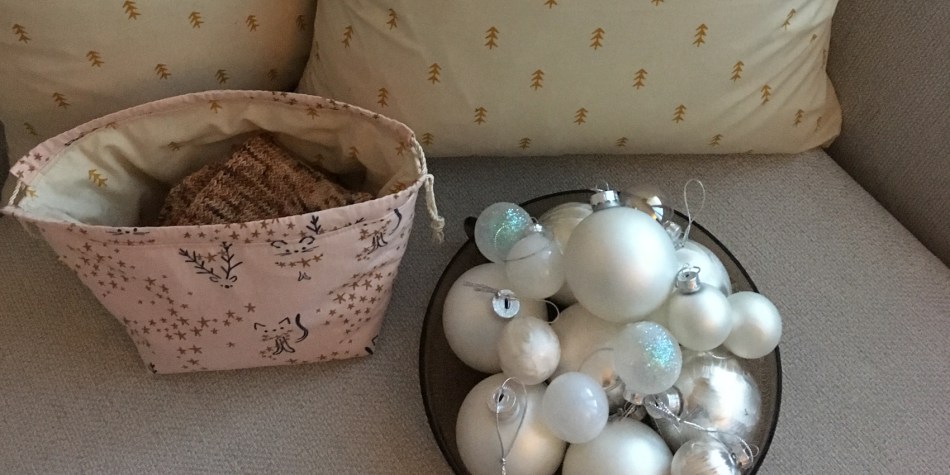 Kodin jouluilmettä varten ompelemistani uusista tyynynypäällisistä ja neuleprojetien projektipussukasta, voit lukea täältä.