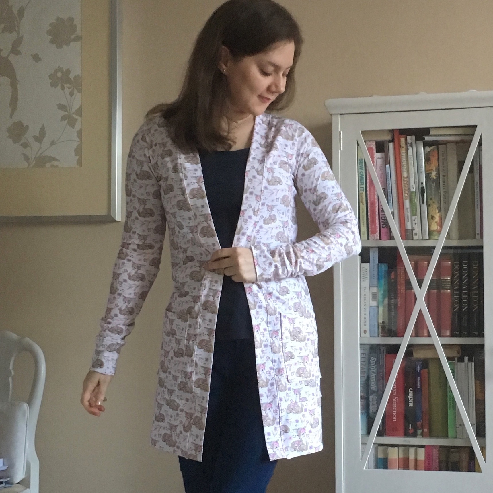 For this second Blackwood cardigan I chose the cutest bambi fabric. This amazingly cute jersey fabric is probably meant for children’s clothes. But who says that we adults could not wear something that makes us smile every time we see it? This jersey is a little bit more light weight than the one I used for my first version of this cardigan pattern. But it works just as well. When I was sick during the Christmas time, this was definitely one of my favourite things to wear. So comfy and cute.