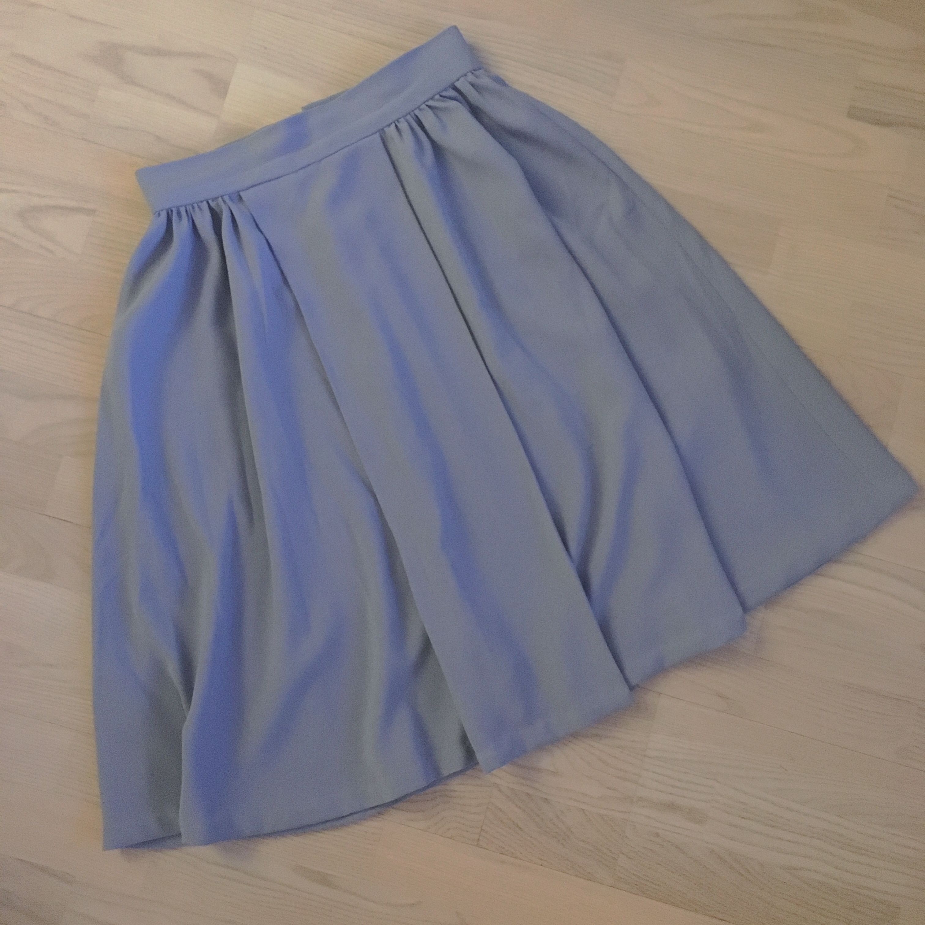 Joulukuun toisena ompeluksena valmistui yksivärinen hame, jollaista olen kaivannut työvaatteideni joukkoon. Tämä hame on ommeltu Sew Over It:n Rosie-kaavalla. Tai oikeastaan saman kaavan sillä versiolla, joka löytyy Sew Over It:n Vintage-ompelukirjasta. Olen piirtänyt tämän kaavan omien mittojeni mukaan ja ommellut sillä on yhden hameen aikaisemminkin. Tiesin siis kaavan istuvan itselleni täydellisesti. Tämän siniharmaan hameen ompelin kauniisti laskeutuvasta krepistä. Hame pääsi välittömästi suosikkivaatteideni joukkoon.