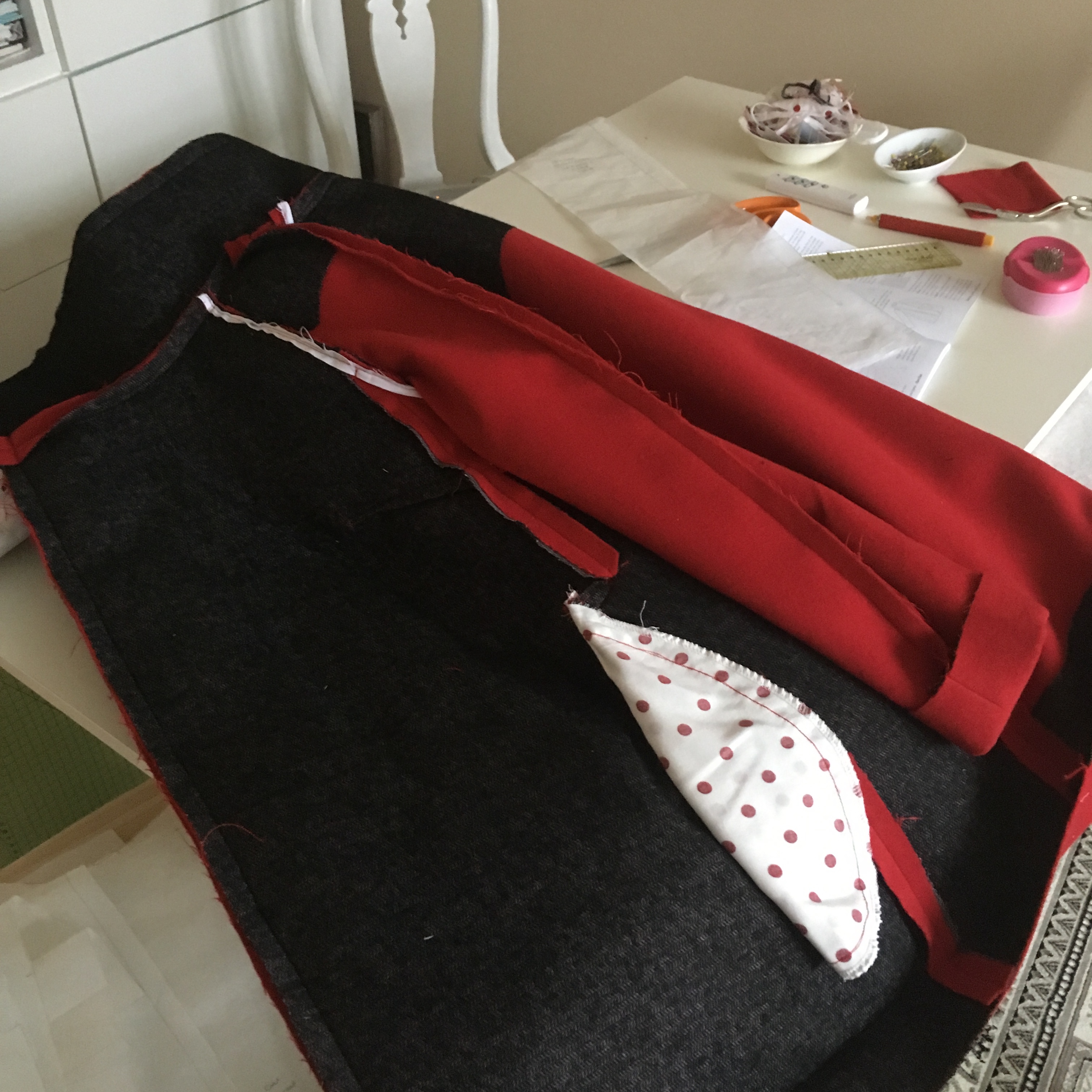 Working with a thick wool fabric – and all other fabric layers – requires energy and strength. Especially at that stage when the coat is coming together, it is no longer easy to work with all the fabric layers. The first challenge is the pure weight of the project. In addition to this it will be increasingly difficult to press all the seams and sew through all layers.