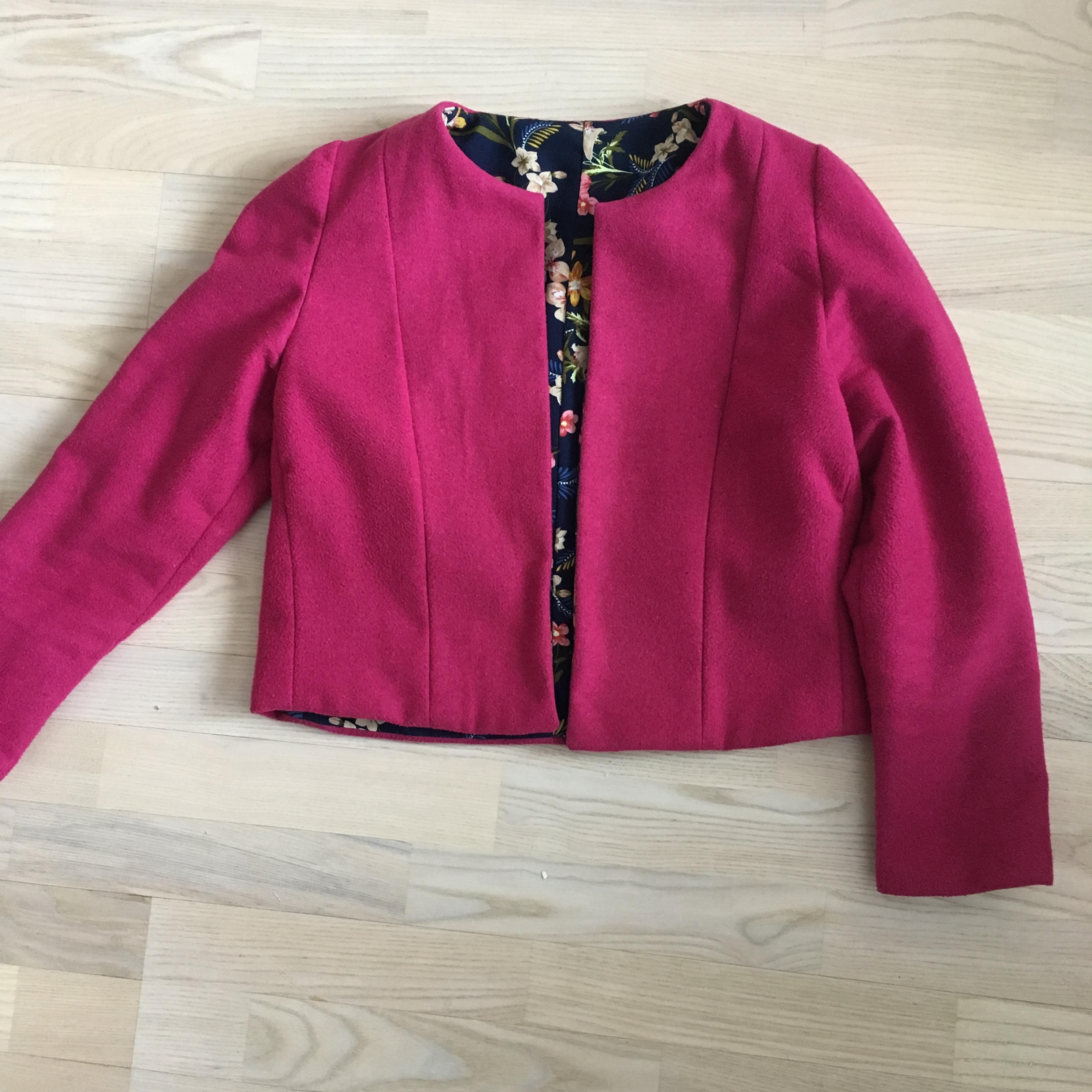 I made my first Coco jacket using some left over wool from a coat project. And for the lining I used this beautiful floral crepe that was also a left over from another sewing project. Made out of a warm wool fabric, this jacket is surprisingly warm. It looks really nice with both dresses and trousers. That is why I have been using this one a lot.