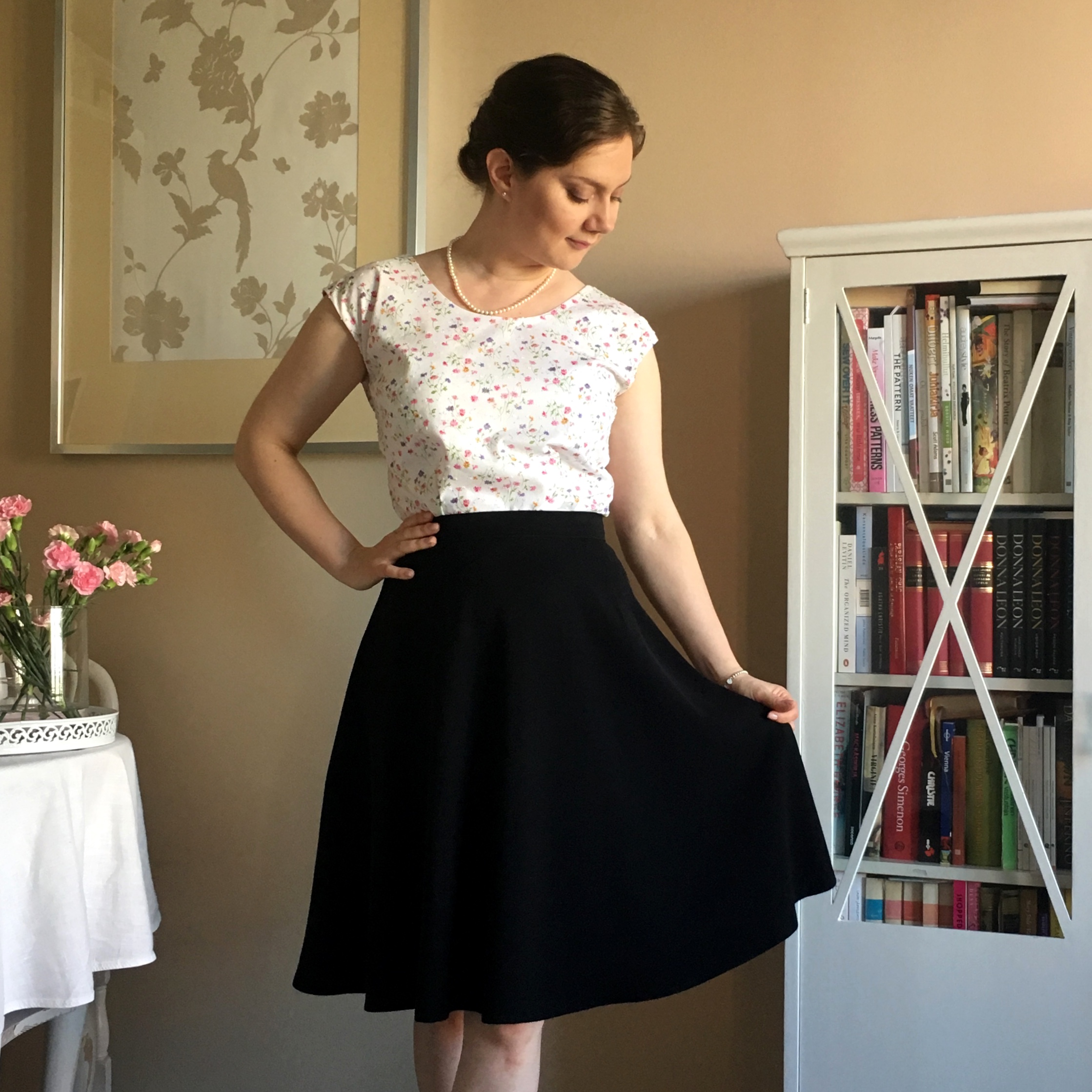 Ihastuin tähän kaavaan alunperin juuri sen yksinkertaisuuden vuoksi. Lisäksi puseron muotolaskokset tekevät siitä täydellisen hameiden kanssa käytettäväksi.