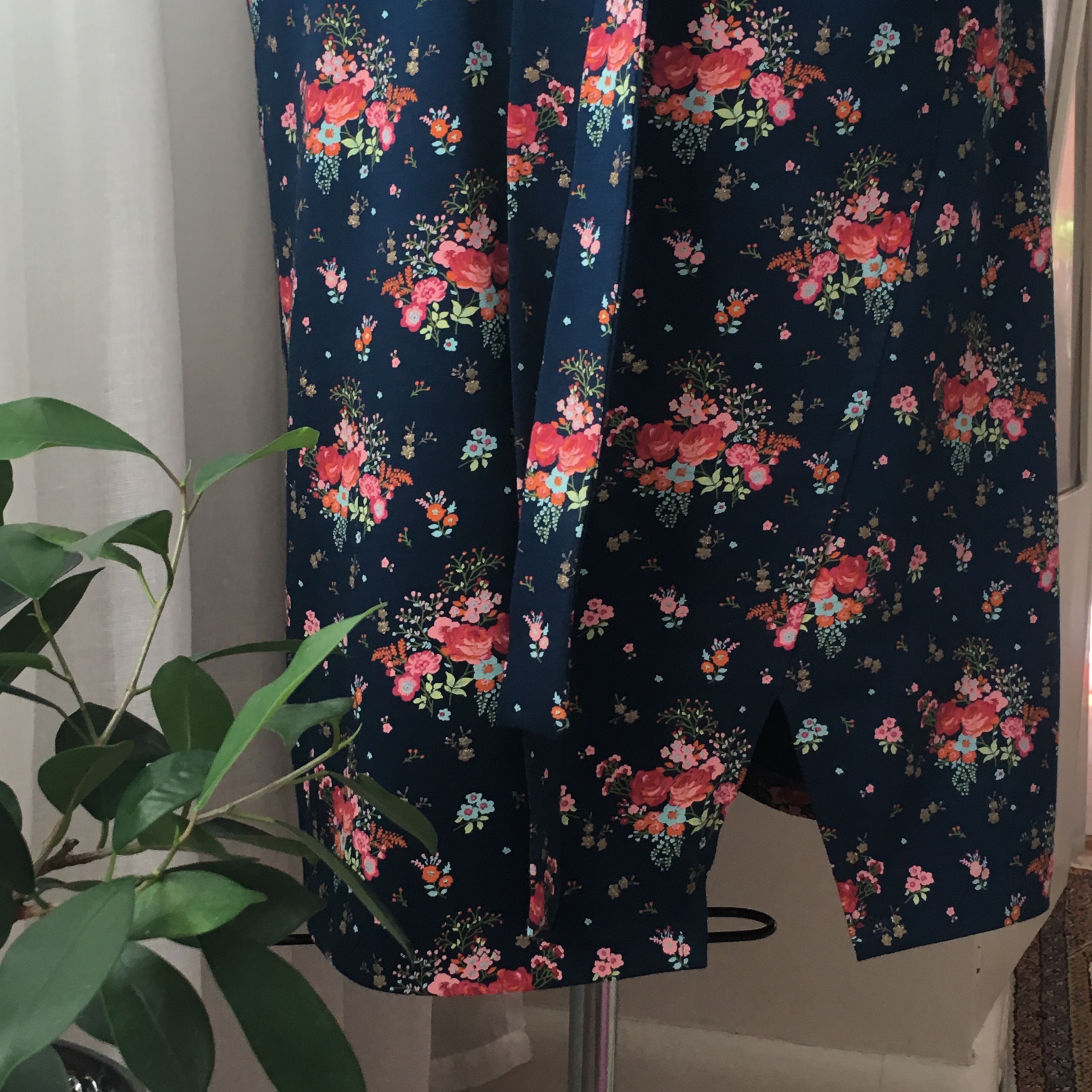 Lyhensin hameen helmaa 15 senttimetriä, sillä halusin ommella rennon kesämekon. Alkuperäisessä kaavassa helma ulottuu selvästi polven alapuolelle. Olen nähnyt upeita versiota sekä pidemmistä että lyhyemmistä helmoista, joten tässä mekossa on muuntelumahdollisuuksia. Mikäli päätät lyhentää helmaa, muista tehdä se kaavaan merkitystä kohdasta.